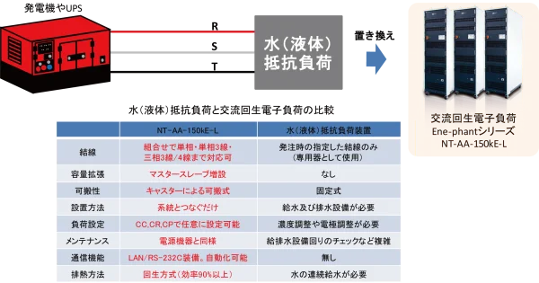 水(液体)抵抗負荷に変わるコンパクト交流回生電子負荷