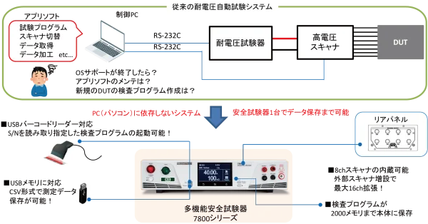PCベースで自動検査システムを構築した場合、PCの入れ替えやOSのサポート終了、新規DUT(試験対象品)の追加による検査プログラムの作成などにおいてPCベースでの修正や新規アプリプログラムの作成などが必要となり、場合によ […]