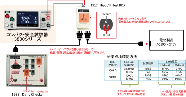 始業試験と絶縁・耐電圧試験を連動させた試験方法