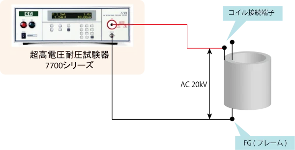 空調機などに組み込まれているモータ(コイル)の耐電圧試験は、交流20kVの高電圧による試験が必要な場合があります。一般的な耐電圧試験器は5kV前後となっていますが、当社の7700シリーズはAC20kVまで出力可能な機種があります。このアプリでは、空調機用モータに組み込まれているコイルのAC20kV耐電圧試験についてご紹介します。
