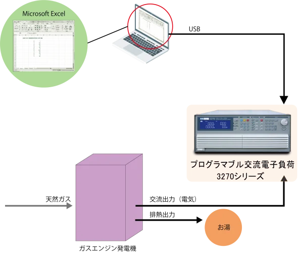 家庭用ガス・コージェネレーションシステムのガスエンジン方式では、ガスエンジン発電機により交流の発電ならびに排熱からお湯を作り出し光熱費を削減して省エネを図っています。発電機の交流出力には様々な家庭電化製品が負荷となって接続され、時間帯によってそれらの消費電力は大きく異なります。