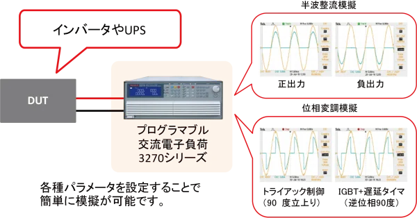 この負荷は交流電源と交流電子負荷を用いることで簡単に構築できます。