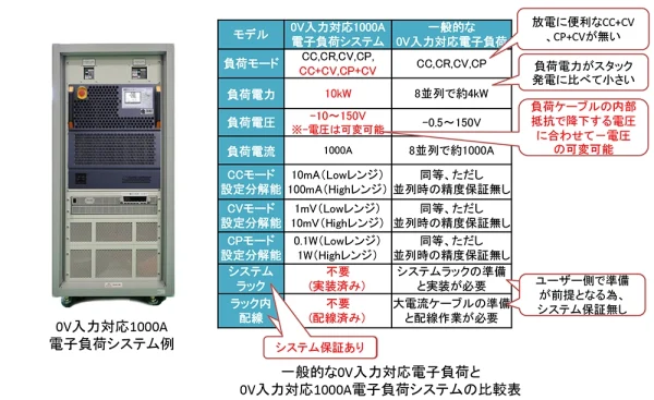 燃料電池ショートスタック評価に最適な0V入力対応大電流電子負荷システム
