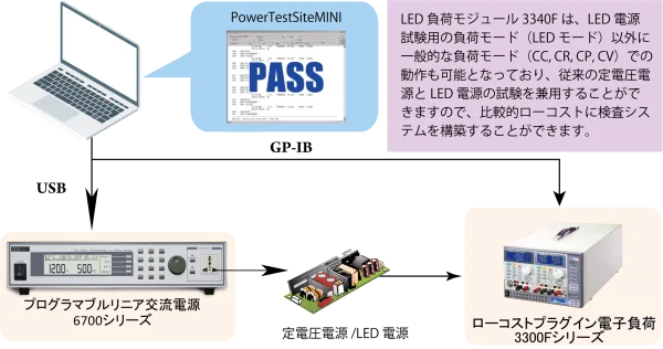 LED電源は定電流出力であり、一般的な電子負荷では正しい試験ができない場合があります。