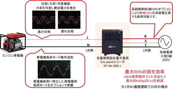 モーターインバータの負荷に最適な1kHz対応交直両用回生電子負荷
