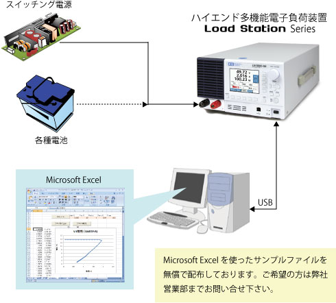 当社電子負荷装置Load Stationシリーズは、新開発のスイープモードにより電子負荷単体でスイッチング電源の過電流保護(OCP) 試験や各種電池のI-V特性試験などを実行することが出来ます。