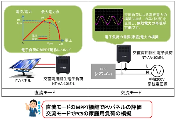 交直両用回生電子負荷のMPPT機能を用いたPVパネルやPCSの評価方法