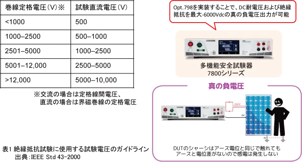 負電圧(DC)出力に対応した耐電圧・絶縁抵抗試験器