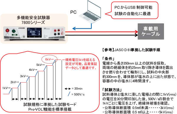 JASO規格に対応した車載用ケーブルの耐電圧試験方法