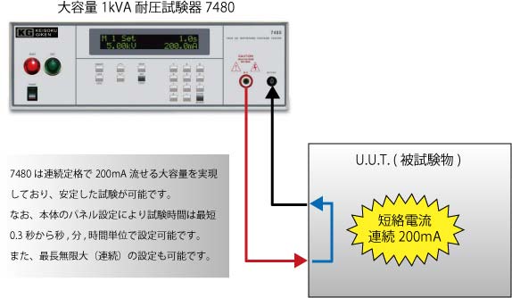 IEC60335-1 規格では、U.U.T.(被試験物)が短絡した場合に試験器から流せる最大電流についての要求があり、4,000V以下の試験では200mAとなっています。このアプリケーションでは 大容量1kVA耐圧試験器 […]