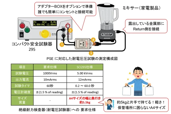 電気用品安全法(PSE)の絶縁耐力試験に最適な軽量・可搬型耐電圧試験器