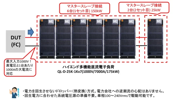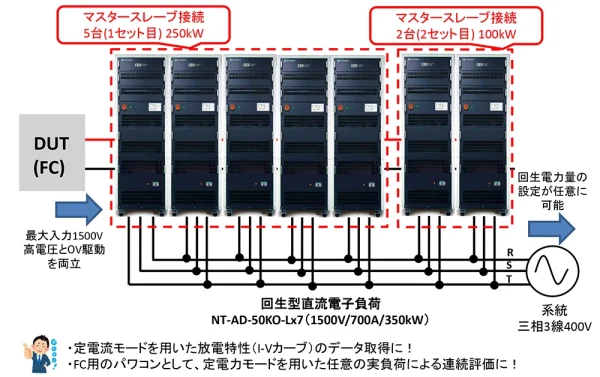 逆潮流の心配の無い、燃料電池(FC)の放電特性評価に最適な大容量直流電子負荷