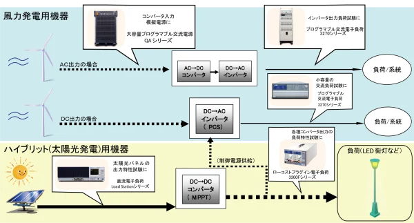 このアプリでは、小容量の風力発電装置(太陽光発電と連携したハイブリッドタイプ含む)について、各種試験に必要な機器をご紹介します。各機器の詳細につきまして、詳しくはWeb製品ページもしくは弊社営業部までお問い合わせください。