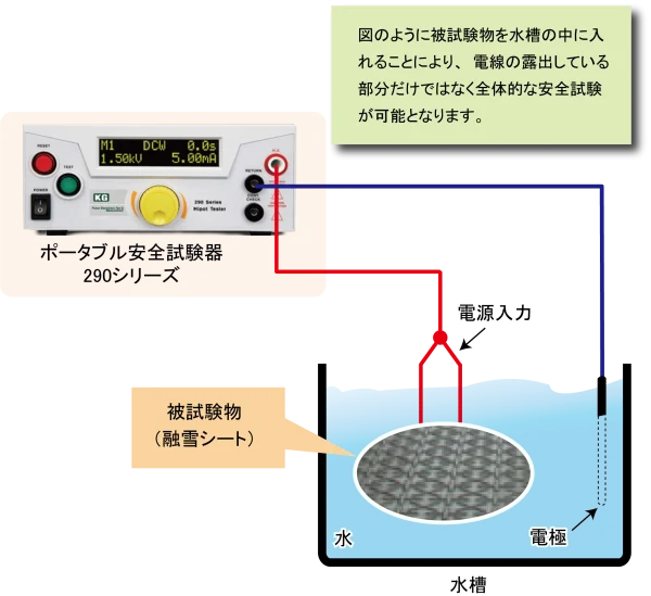 このため、安全試験が必要となりますが、縦横に張り巡らされた全てのポイントで試験するのは現実的ではないため、これに替わる方法として水槽を使った安全試験をご紹介します。