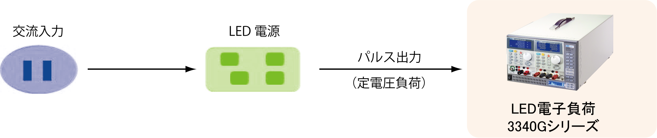 PWM調光機能付きLED電源(ドライバ)の評価検査構成図