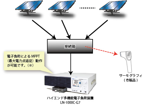 ATX仕様コンピュータへの組み込み用電源として広く普及しているATX電源は、通常6チャンネルの出力を持っており、その負荷試験をするためには言うまでもなく6台の負荷装置が必要となります。このような場合、プラグインタイプの電子負荷装置でデュアルチャンネル負荷モジュールを使うことにより、簡単に6チャンネルの負荷装置を構築することが可能になるため、ATX電源の負荷変動試験を容易に行うことができます。