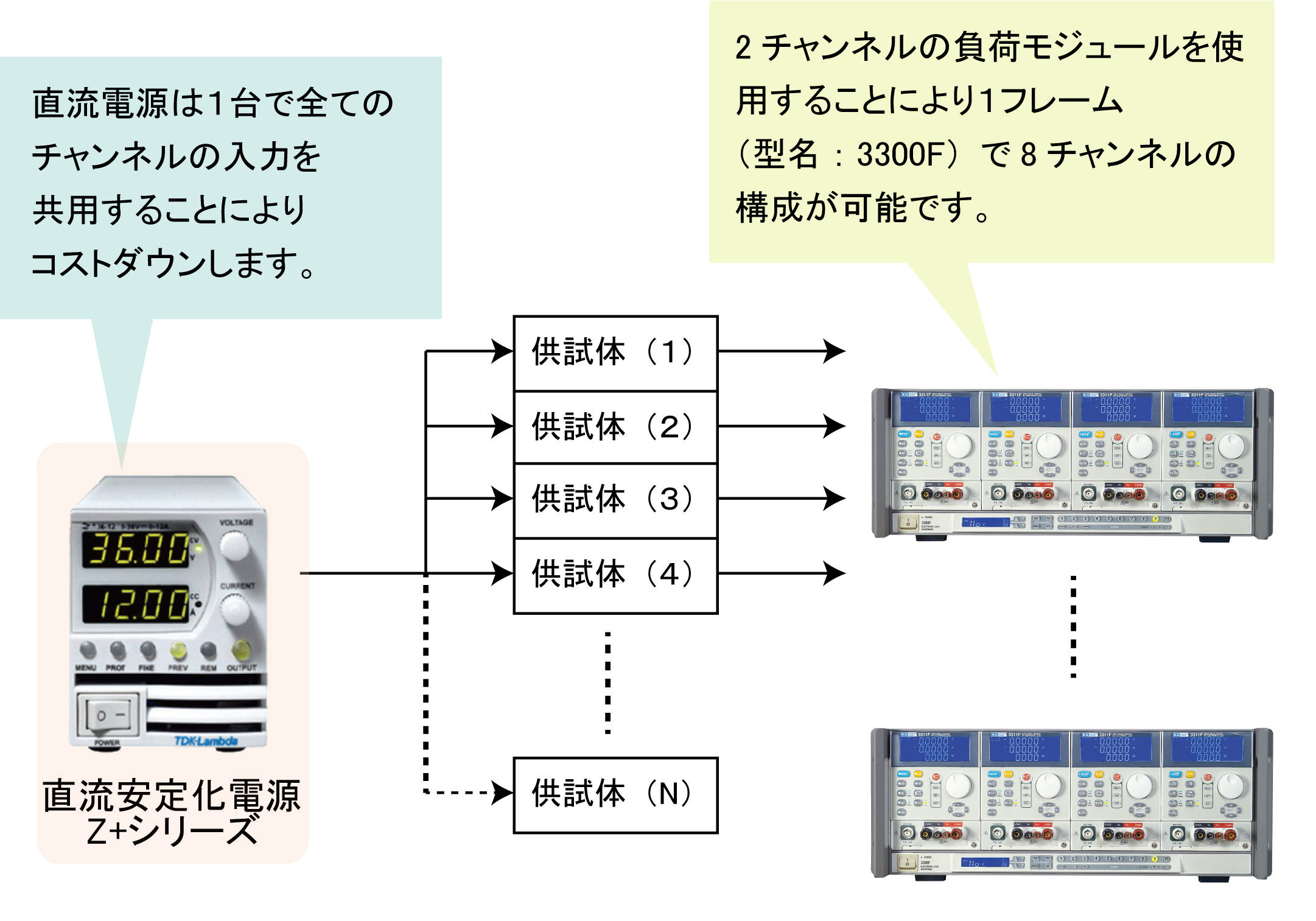 車載用ワイヤーハーネスやジャンクションボックス等の通電試験を行うためには、他チャンネルの直流電源と負荷装置が必要となります。このアプリでは、コストダウンのため直流電源は1台で兼用とし、多チャンネルの電子負荷装置による構成例をご紹介します。