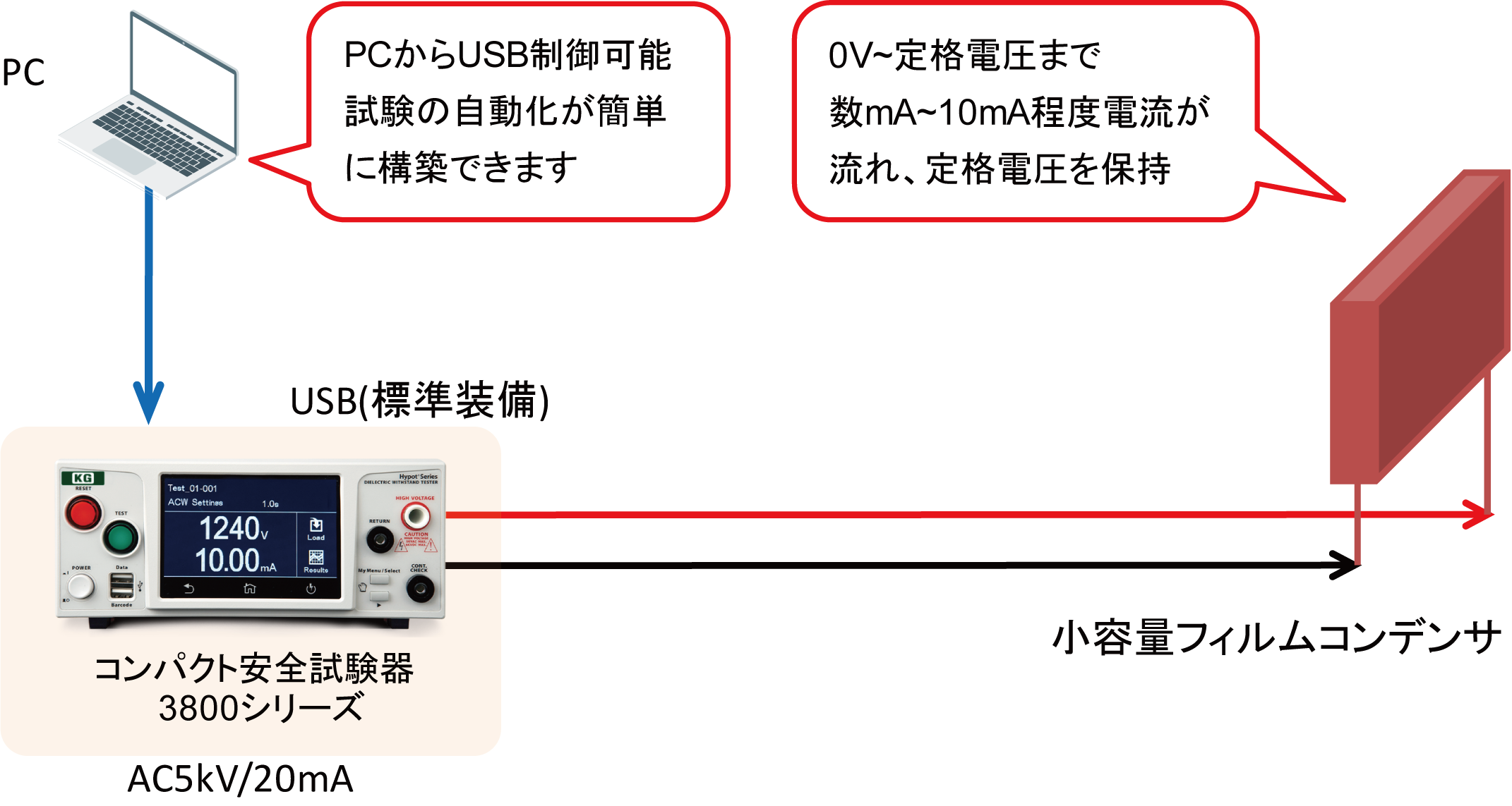 【仕様概要】耐電圧AC5kV、DC6kV/絶縁抵抗/グランド導通