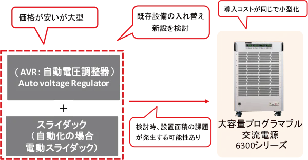 UPSや商用インバータの評価や試験において、突入電流試験を行う際は、実負荷の準備や試験回路などで再現させる為、準備や必要な突入電流値の設定に多くの時間がかかる試験項目でした。シミュレータ機能をもって交流電子負荷を用いることで、各種パラメータの設定により、要求する容量負荷性の突入電流や電源投入時のシミュレーションおよび電化製品へ直接電源を差し込んだサージ電流の再現を簡単に行うことができます。