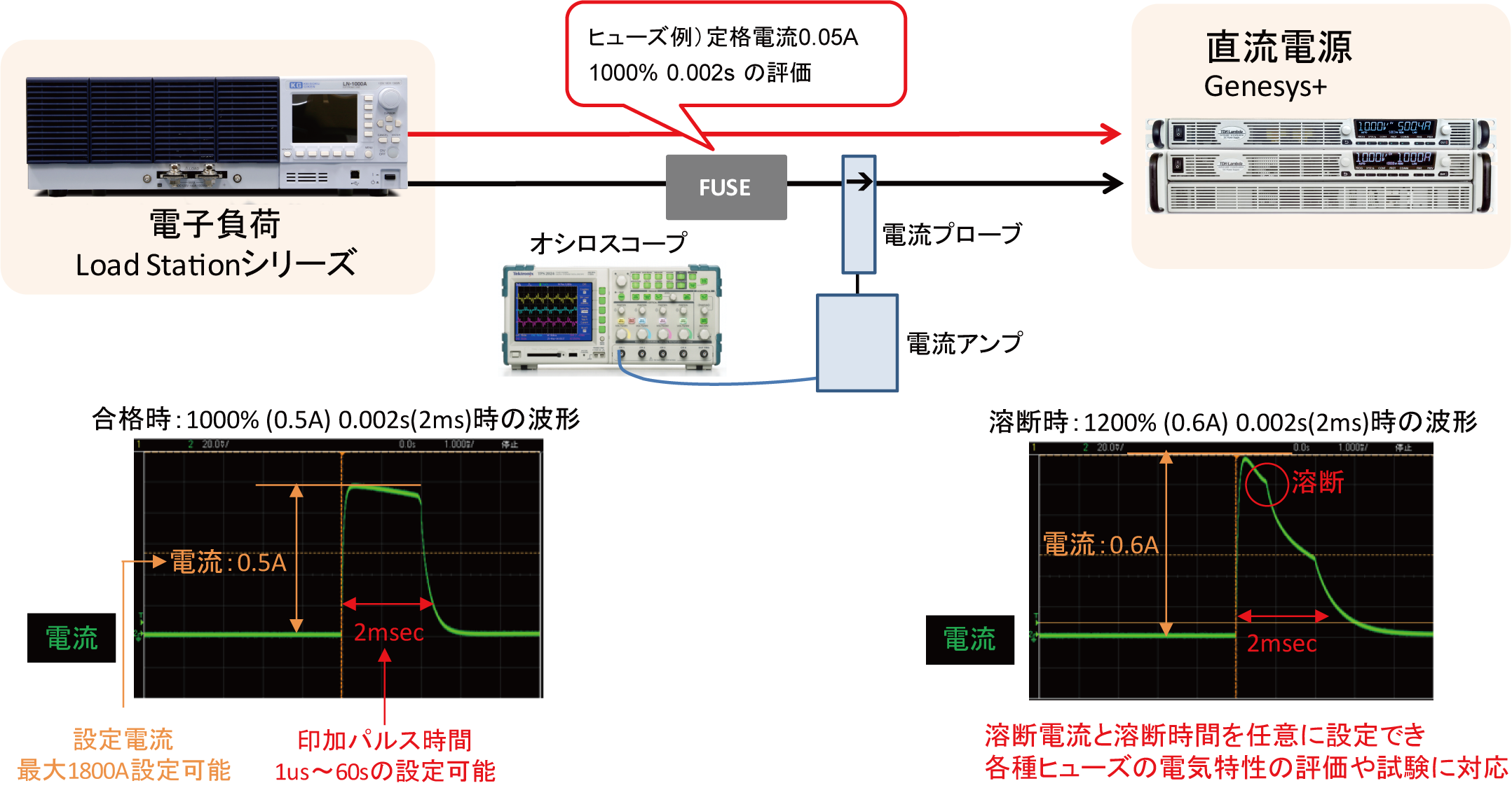 電子負荷を使ったヒューズの溶断電流・溶断時間の試験方法