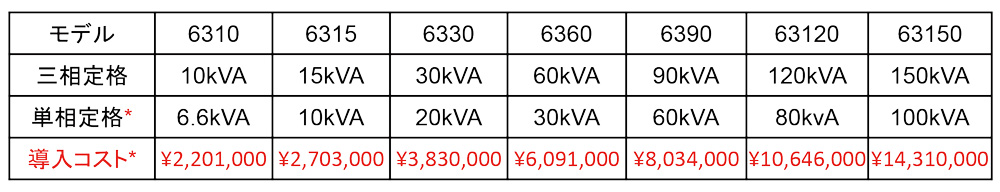 - 力率改善回路(PFC)を削除したローコスト版を10kVA~150kVAをラインナップ