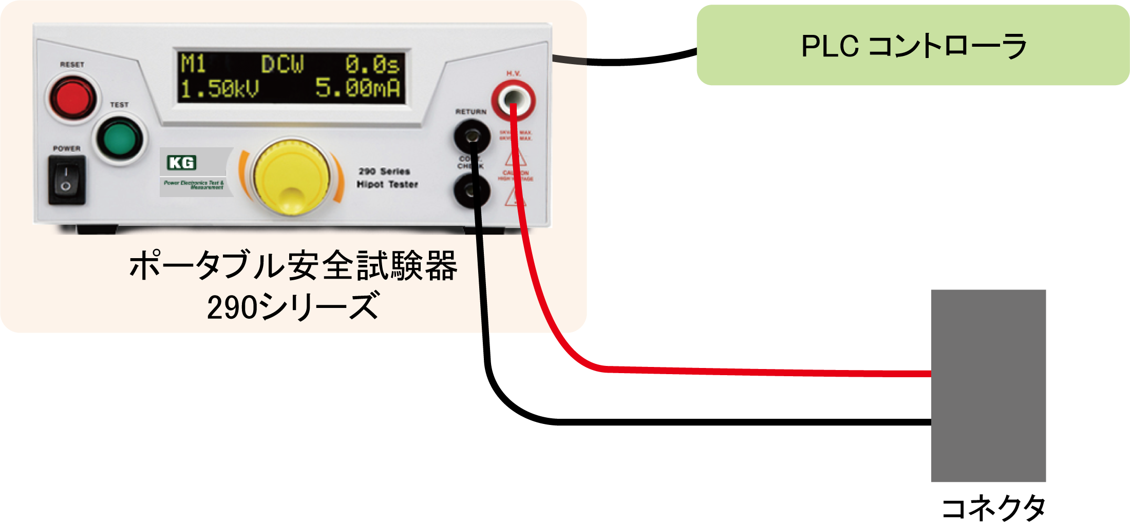 PLC によるコネクタ絶縁・耐圧試験の構成図