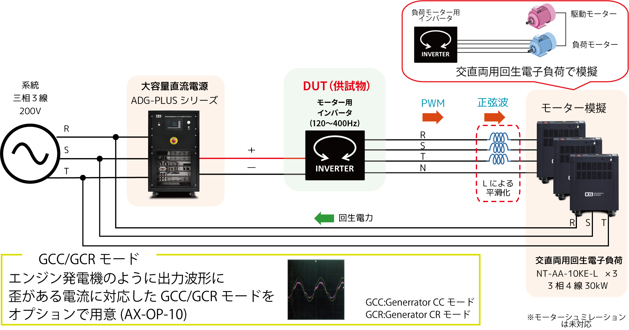 交流電子負荷を使用したモーター模擬によるインバーターの評価