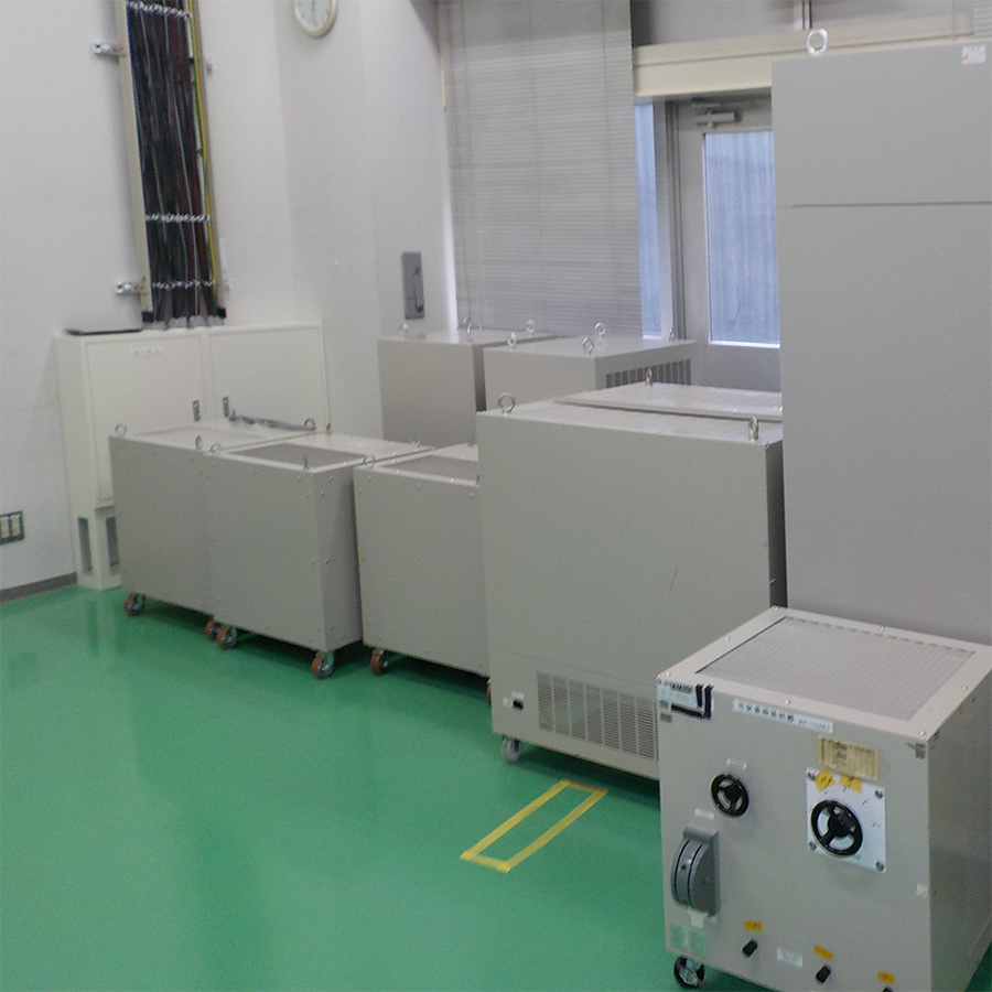 使用エネルギー削減を目的に、社内での製品受入・出荷試験の見直しを図り、製品の一部から従来発熱が多いドロッパー回路の抵抗負荷の置換で当社の電力回生(最大90%)型の回生型電源や回生型電子負荷に試験器材を変更し、使用電力量削減を実施