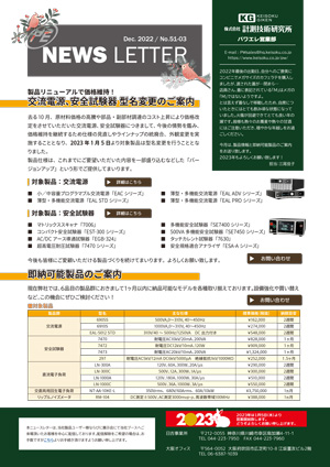 NEWS LETTER No.51-03を発行致しました 2022-12-28 最終更新日時 : 2022-12-28 kg_master 本日、KG NEWS LETTERを発行致しました。 今月は、製品情報と即納可能製品のご案内をお送り致します。 ぜひご覧ください。 メルマガ配信中! 現在当事業部ではニュースレター、アプリケーション、テクニカルレポートの更新をご案内するメールマガジンを配信しております。ぜひご登録ください! メルマガ配信お申し込み