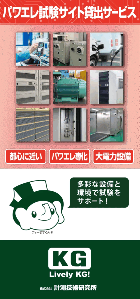 ●パワエレ試験用の大電力用の各種計測器を保有している「試験サイト」が見当たらない