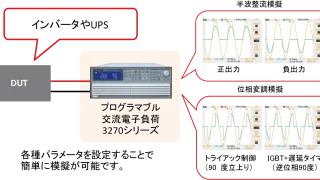 半波整流などの負荷モードを再現させ、インバータやUPSの出力電圧の安定性の試験・評価などに使用します。シリコン制御整流子(SCR)であるサイリスタやトライアックなどの位相変調模擬に最適です。