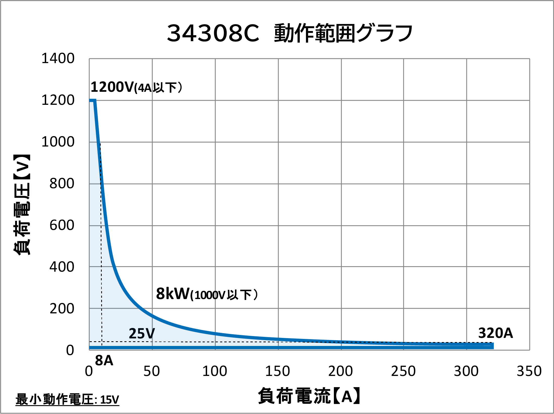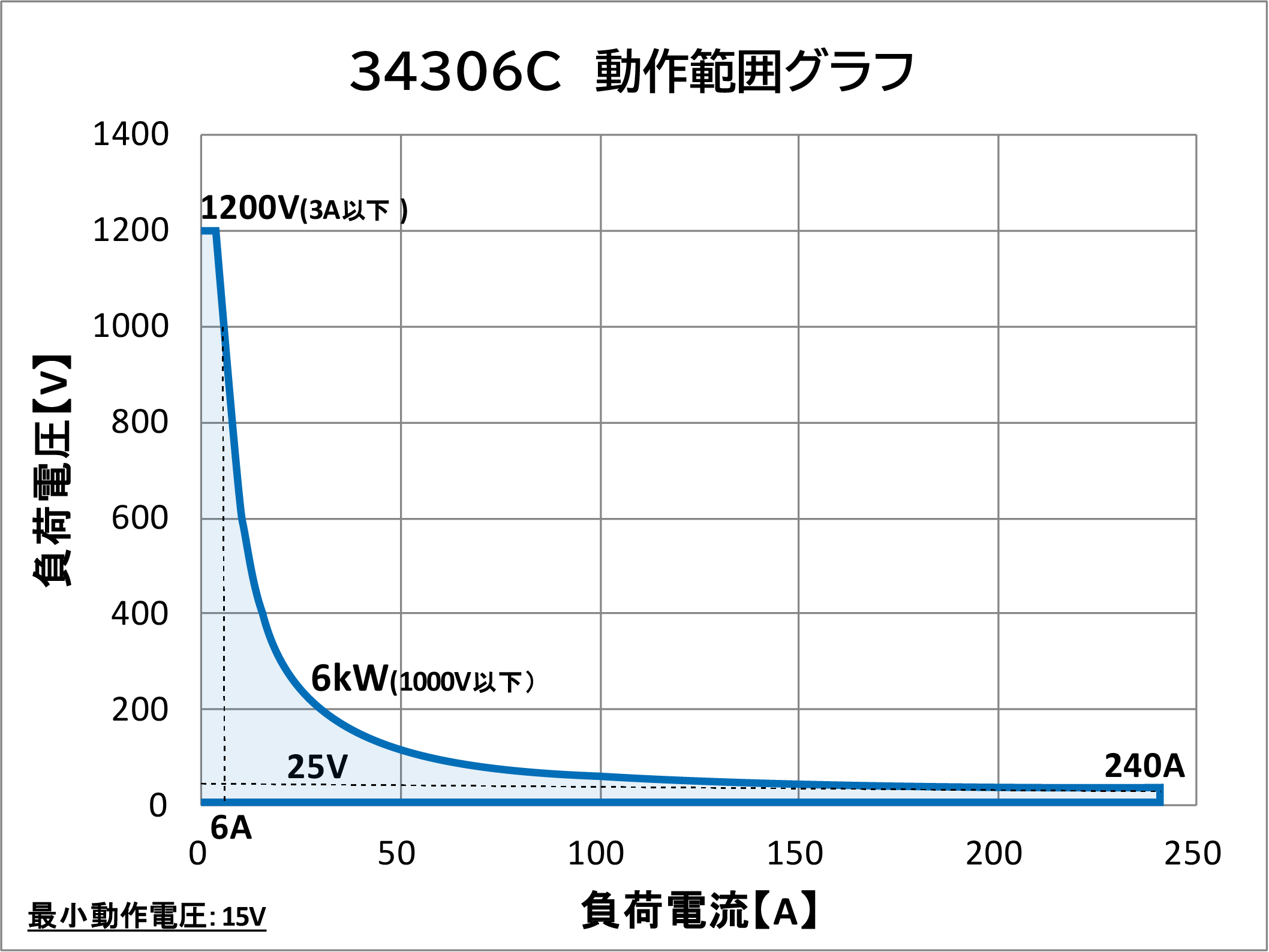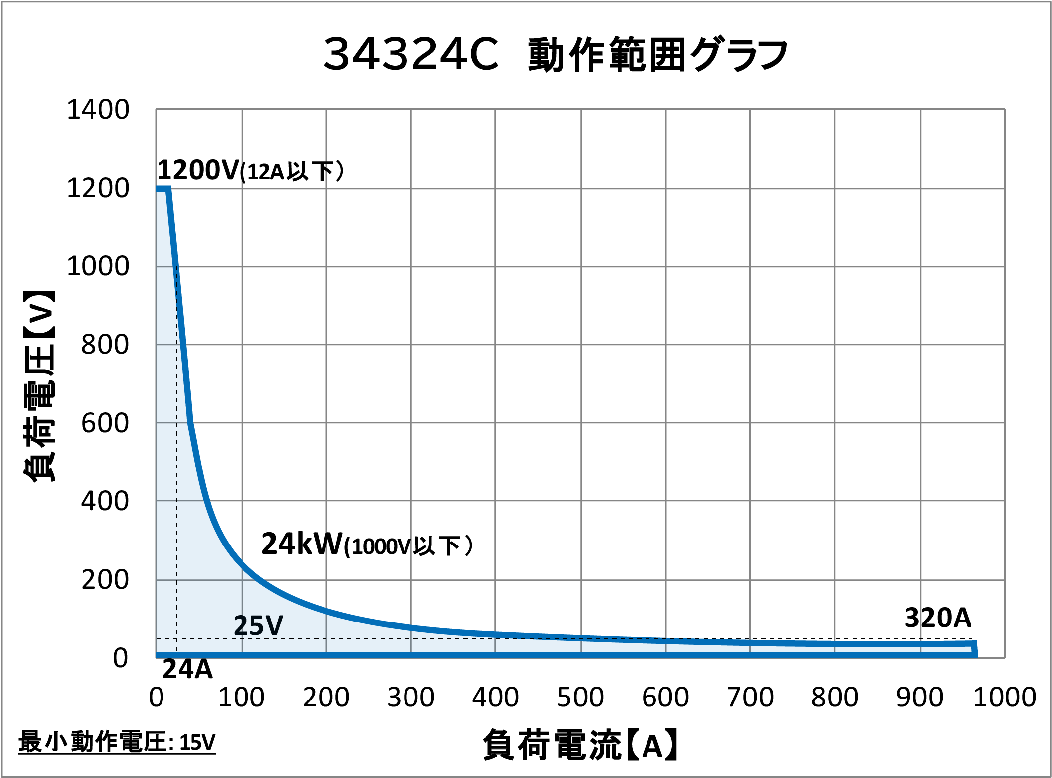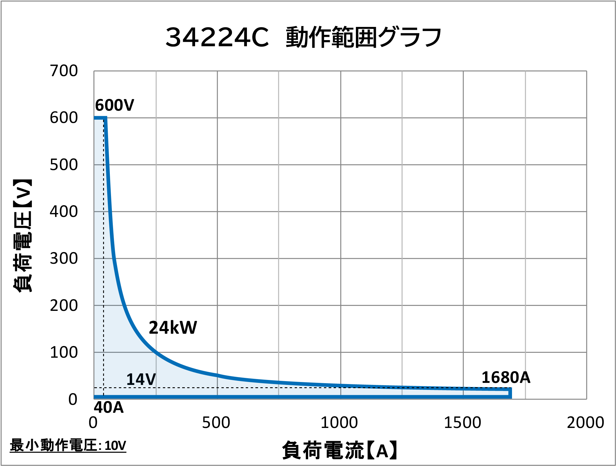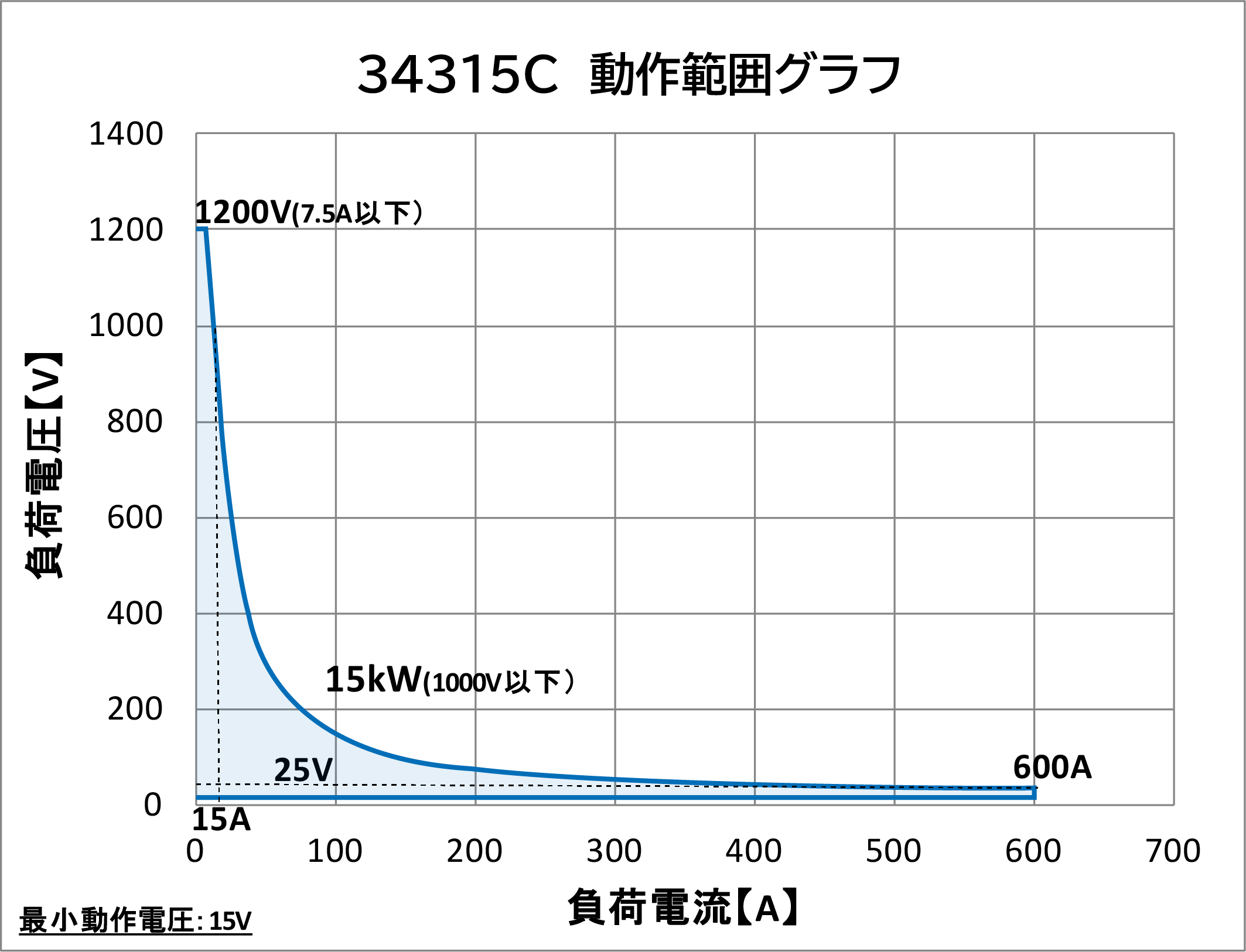 - 当社電子負荷はレンジ幅が広くなっております。印加電圧、負荷電流に対し電力制限が掛かる場合がございますのでご注意ください。