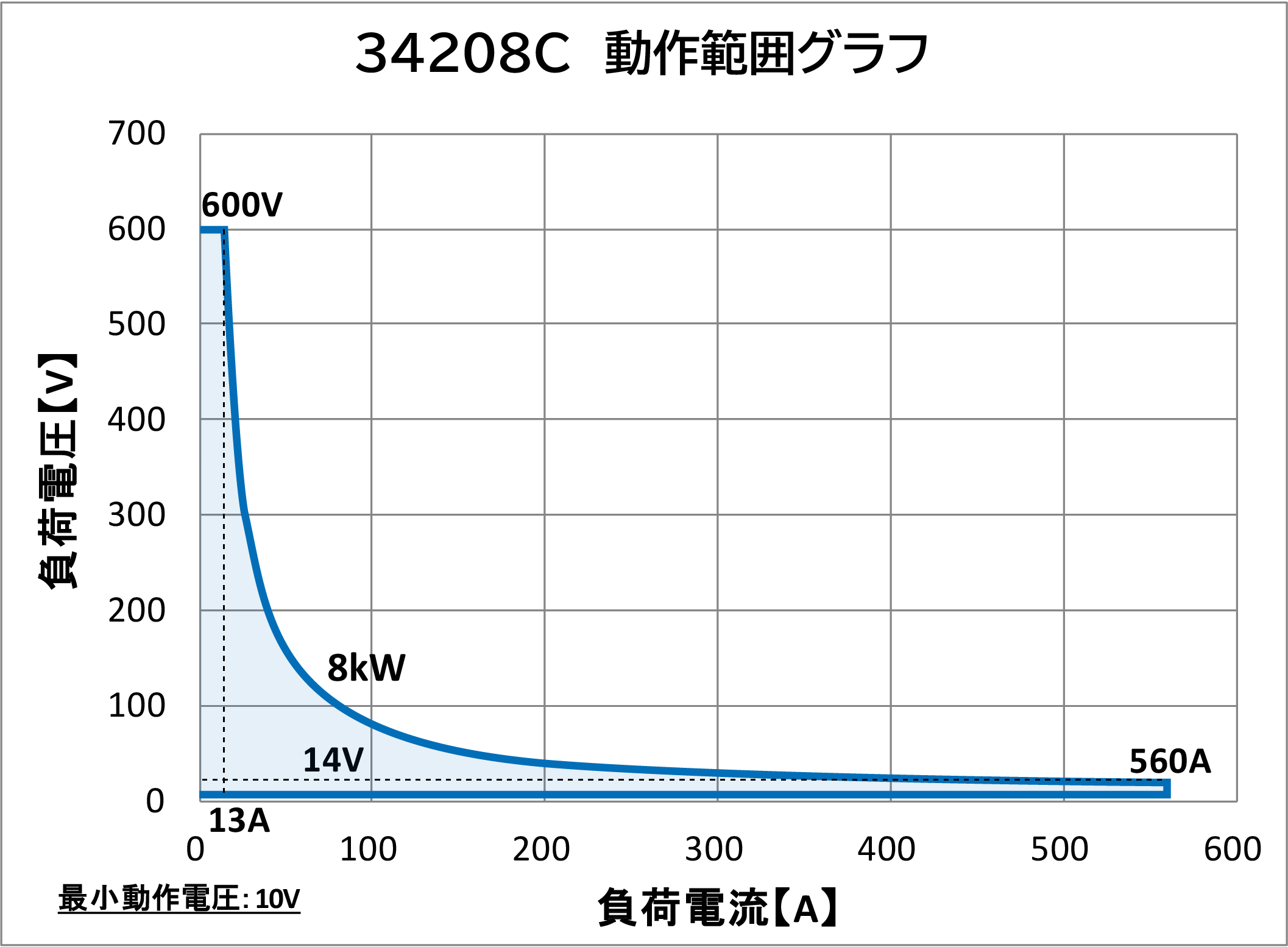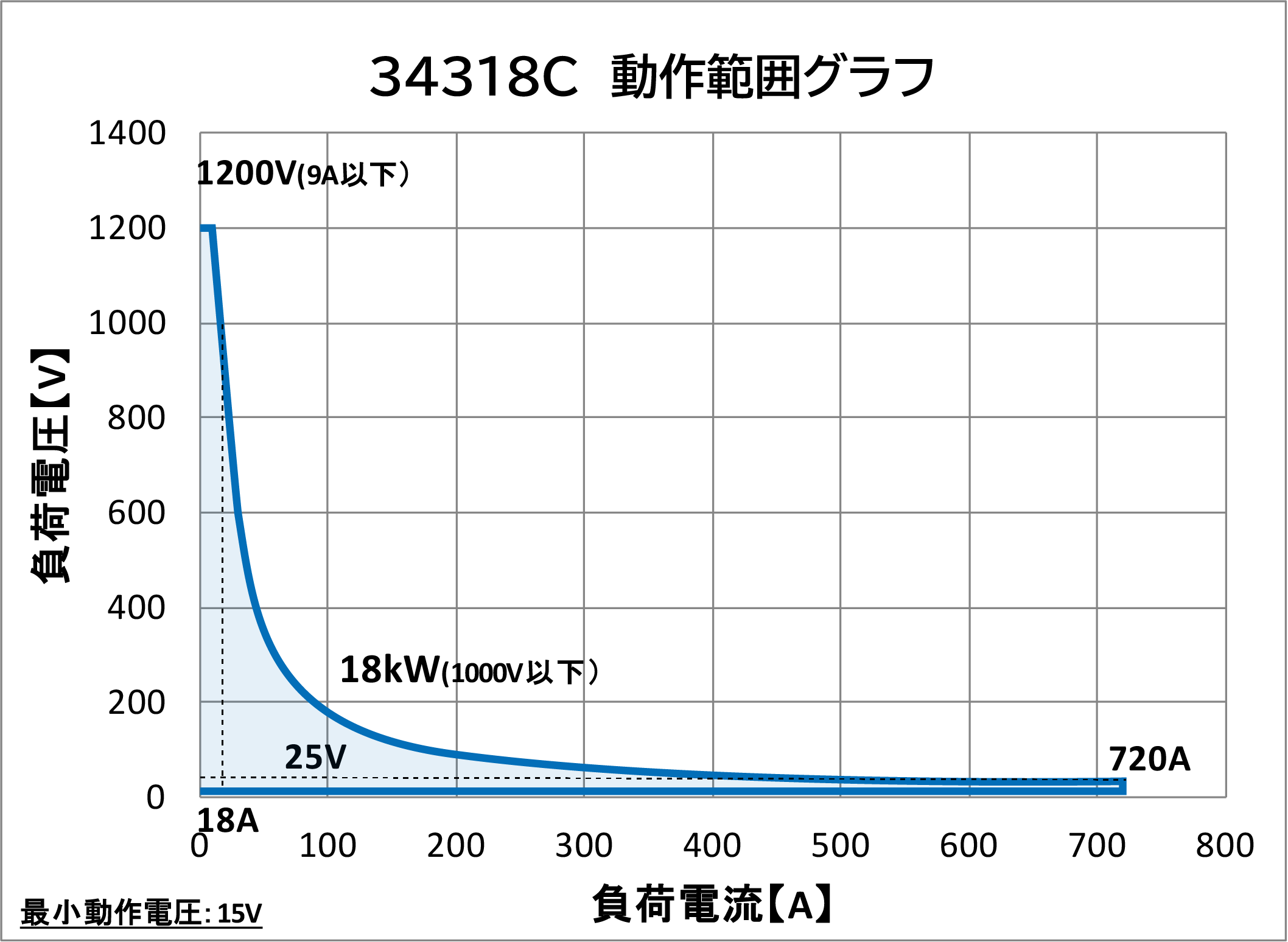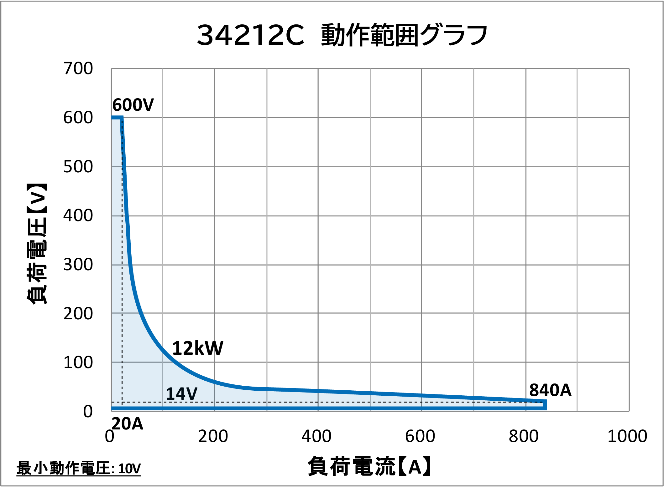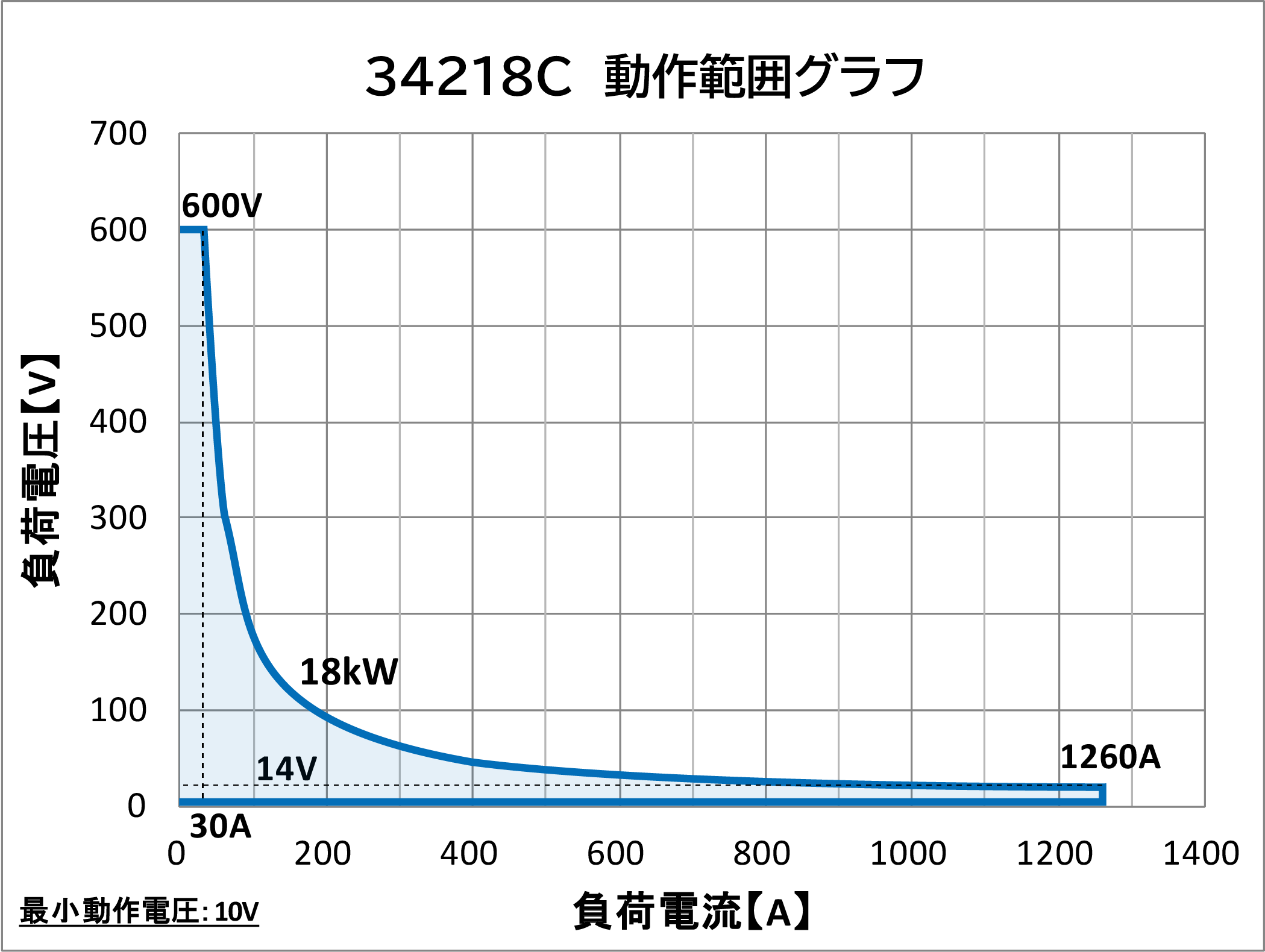 - 0V付近からの低電圧領域での負荷動作を御所望の場合は当社ドロッパータイプの最小動作電圧がない電子負荷をご選定ください。