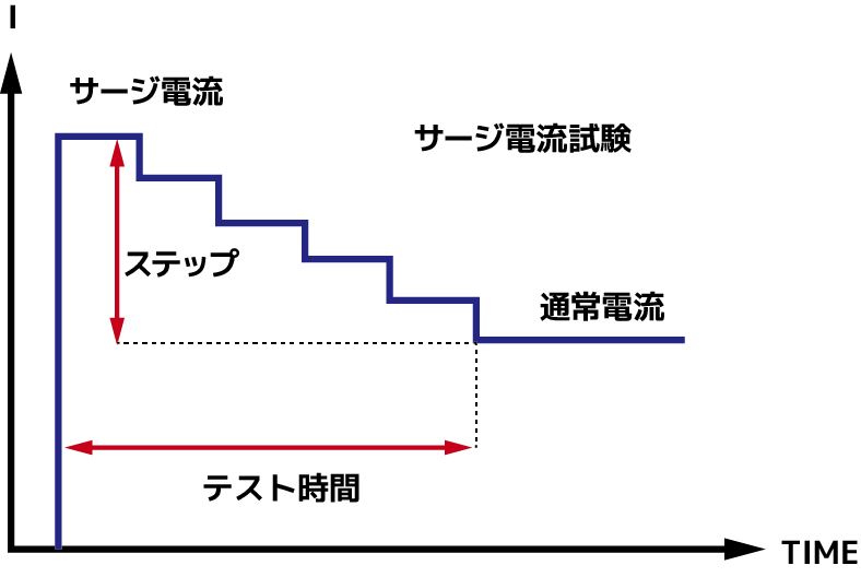 - 大電流を急速にオフした場合、負荷線のインダクタンス成分により逆起電力が発生して過電圧印加となる可能性がありますのでご配慮ください。