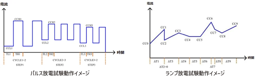 - OCP/OPP試験,MPPTモード,バッテリー放電試験、パルス放電モード、ランプ放電モードを搭載