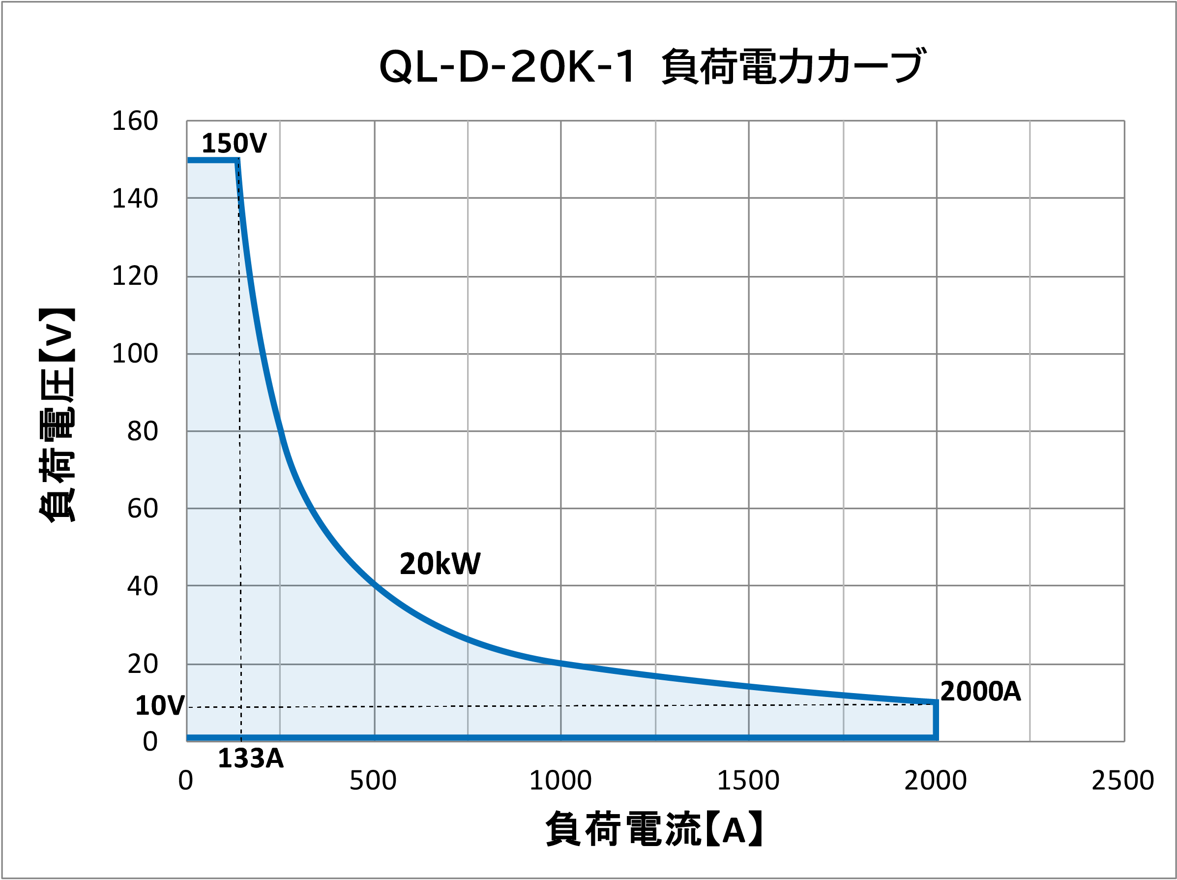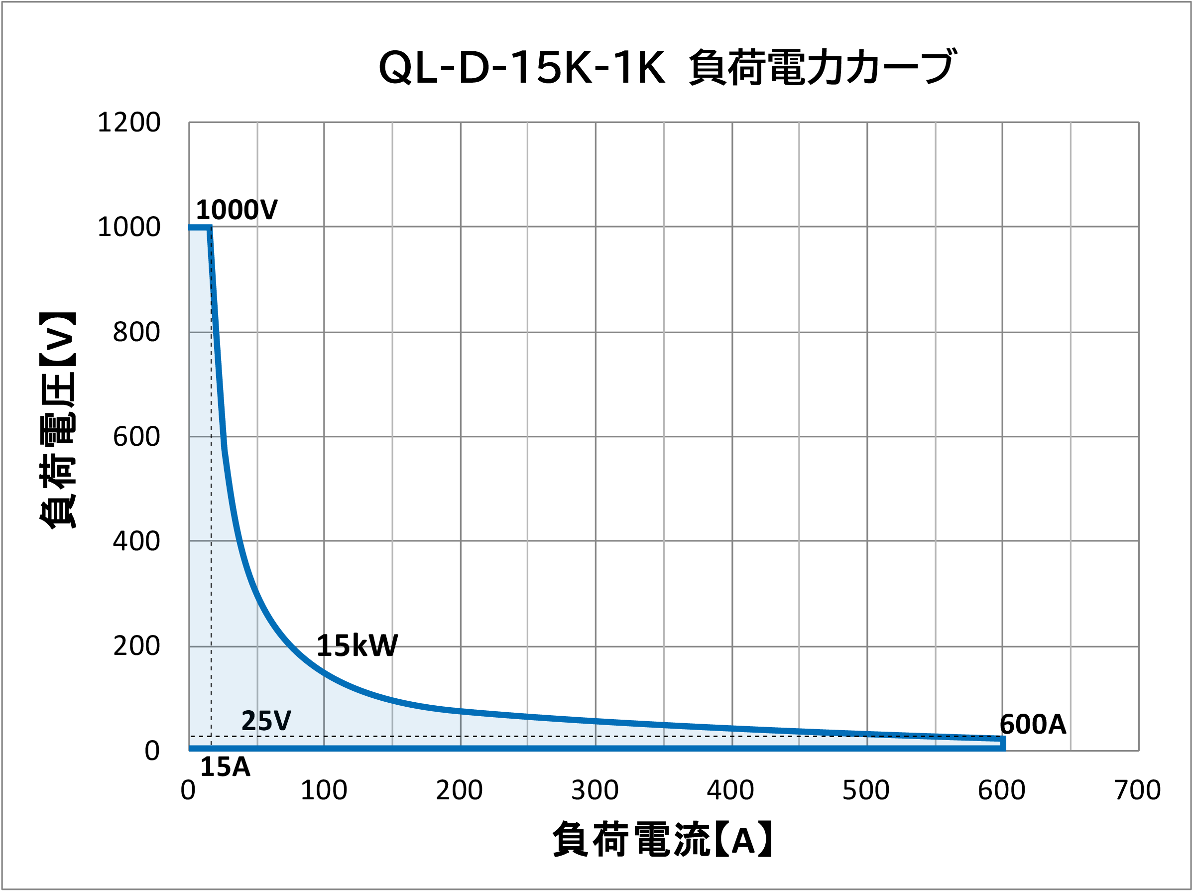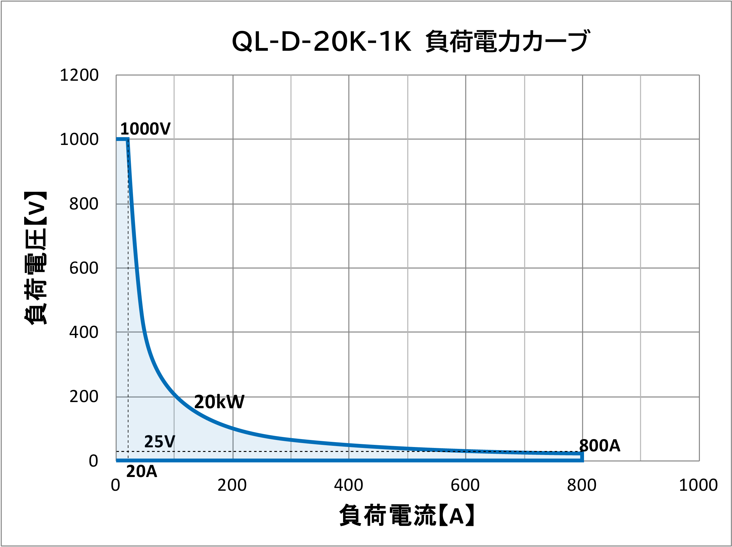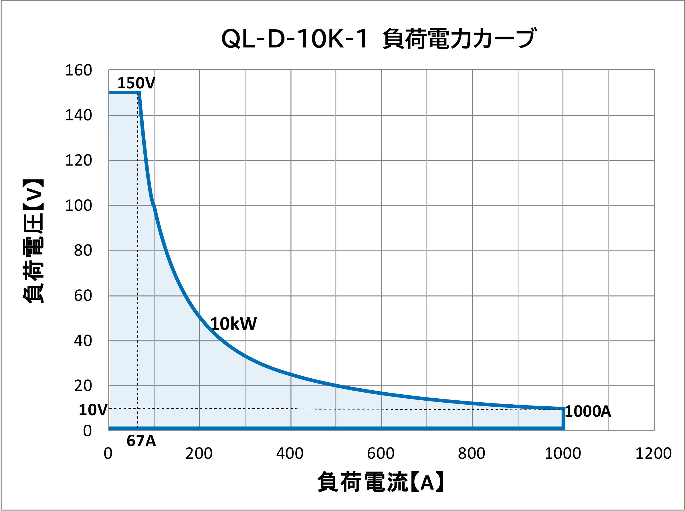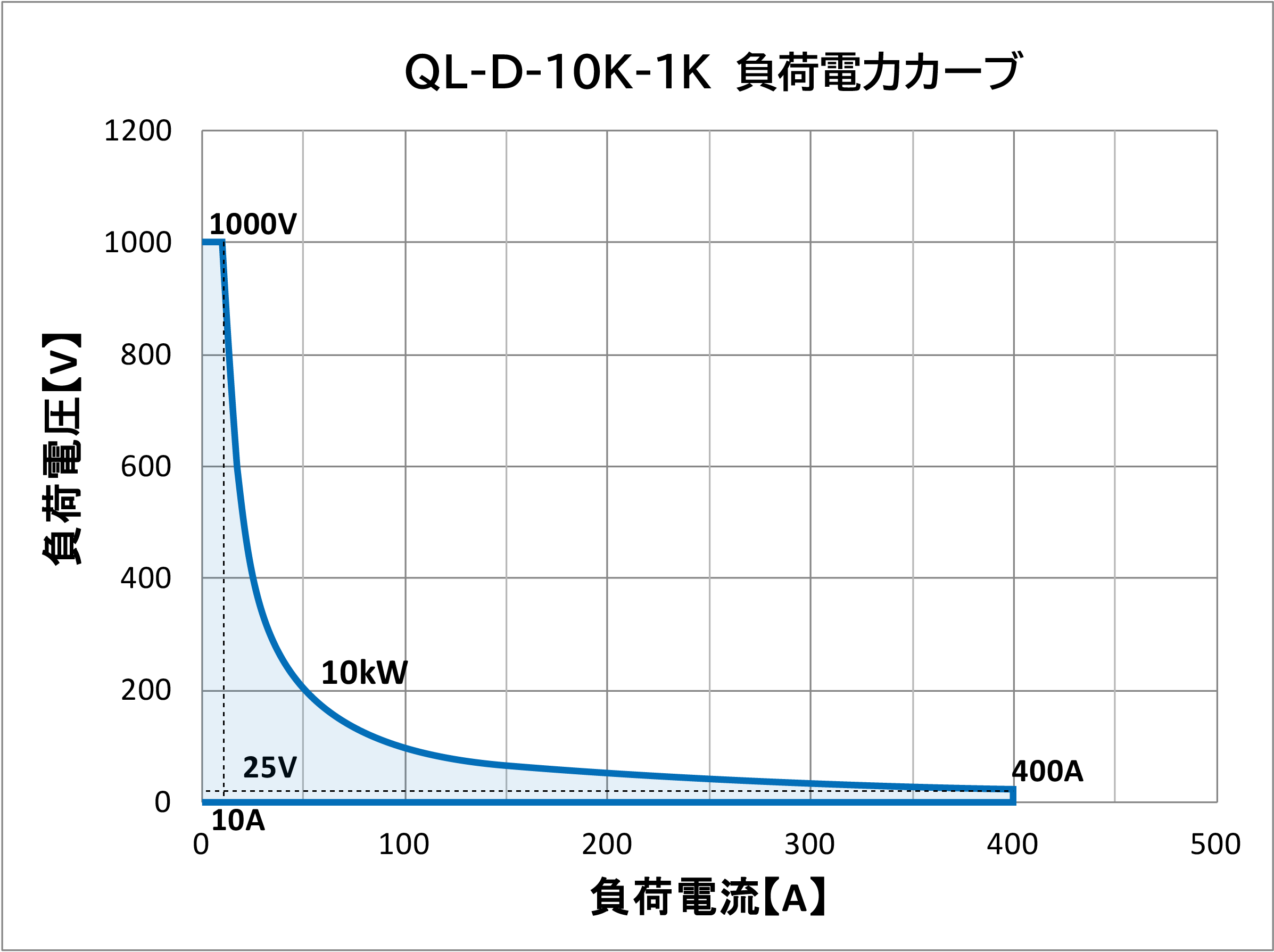 - 当社電子負荷はレンジ幅が広くなっております。印加電圧、負荷電流に対し電力制限が掛かる場合がございますのでご注意ください。