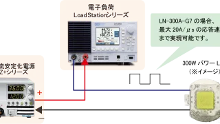 このアプリでは、直流電源と電子負荷を組合せてパワーLEDをパルス的に高速点滅する試験方法をご紹介します。直流電源のみでは高速に点滅させることはできませんが、直流電源の出力に高速応答の電子負荷を挿入することにより、専用の試験装置を用意することなく比較的容易に実現することができます。