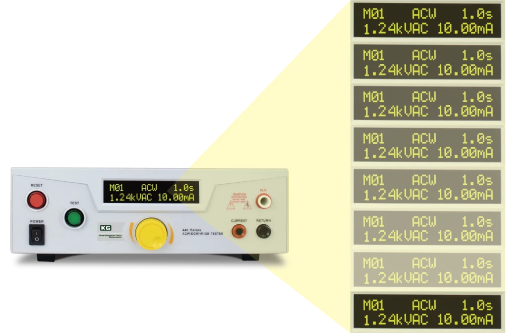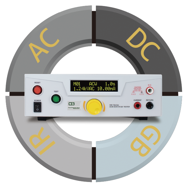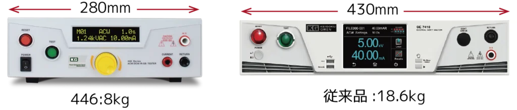 コンパクトな筐体(幅280mm、質量約8kg)に、4in1(AC/DC耐電圧、絶縁抵抗、アース導通)を搭載した安全規格試験器です。簡単に安全規格試験自動検査システムの構築をすることが出来ます。