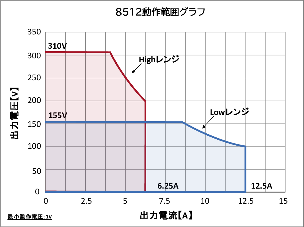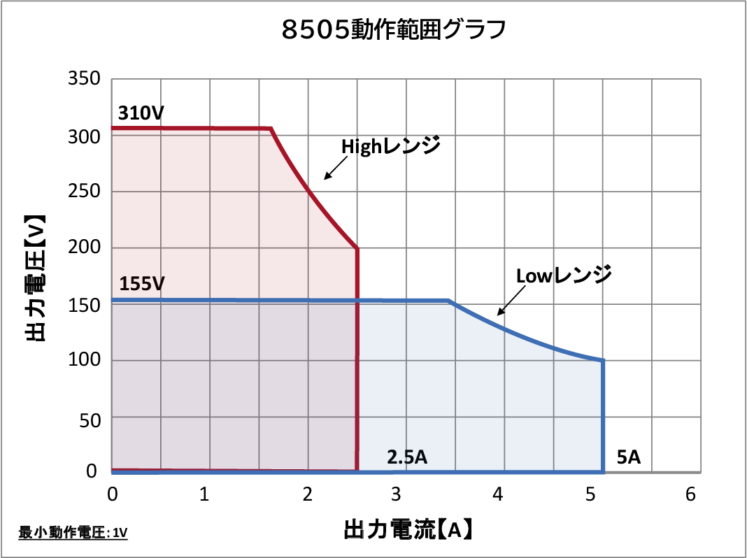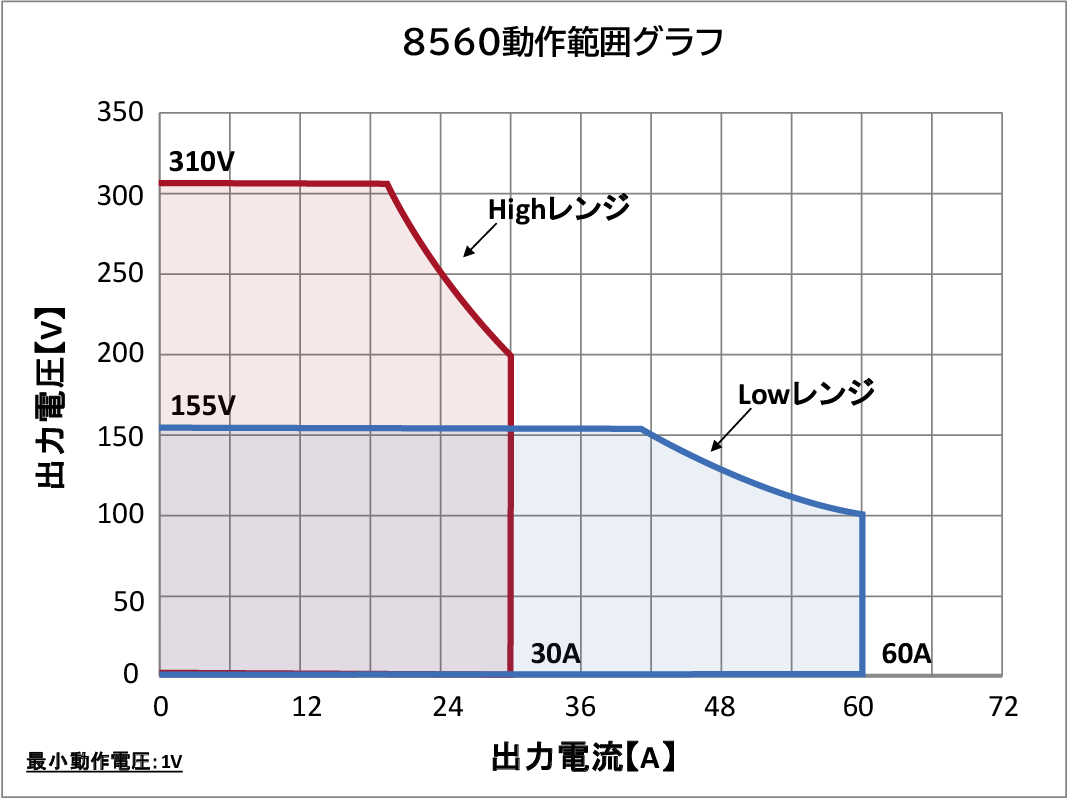 • 製品によって出力電力がワイドレンジとなる機種がございます。この場合、出力可能な電圧、電流に制限が掛かることがございますのでご注意ください。