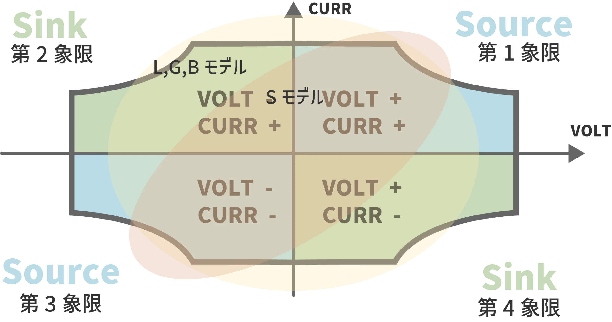 | 象限 | 第1、第3象限 | 第1、第2、第3、第4象限 ※第2、第4象限は誘導性/容量性負荷の範囲 | 第1、第2、第3、第4象限 | 第1、第2、第3、第4象限 |