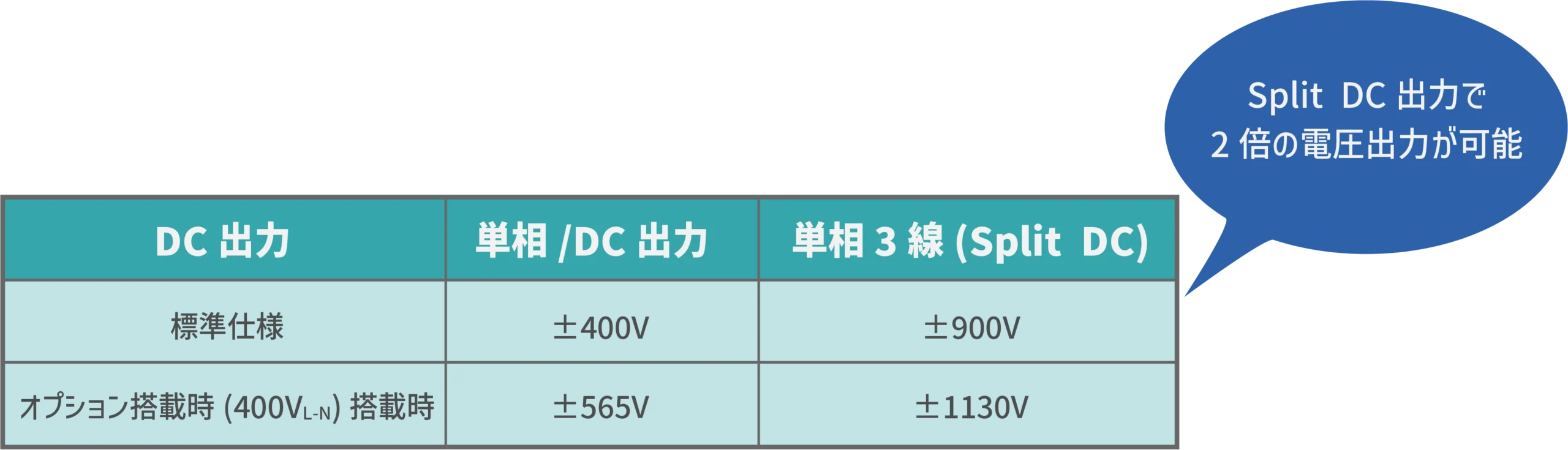 ユニークなSplit DC(単相3線)出力機能