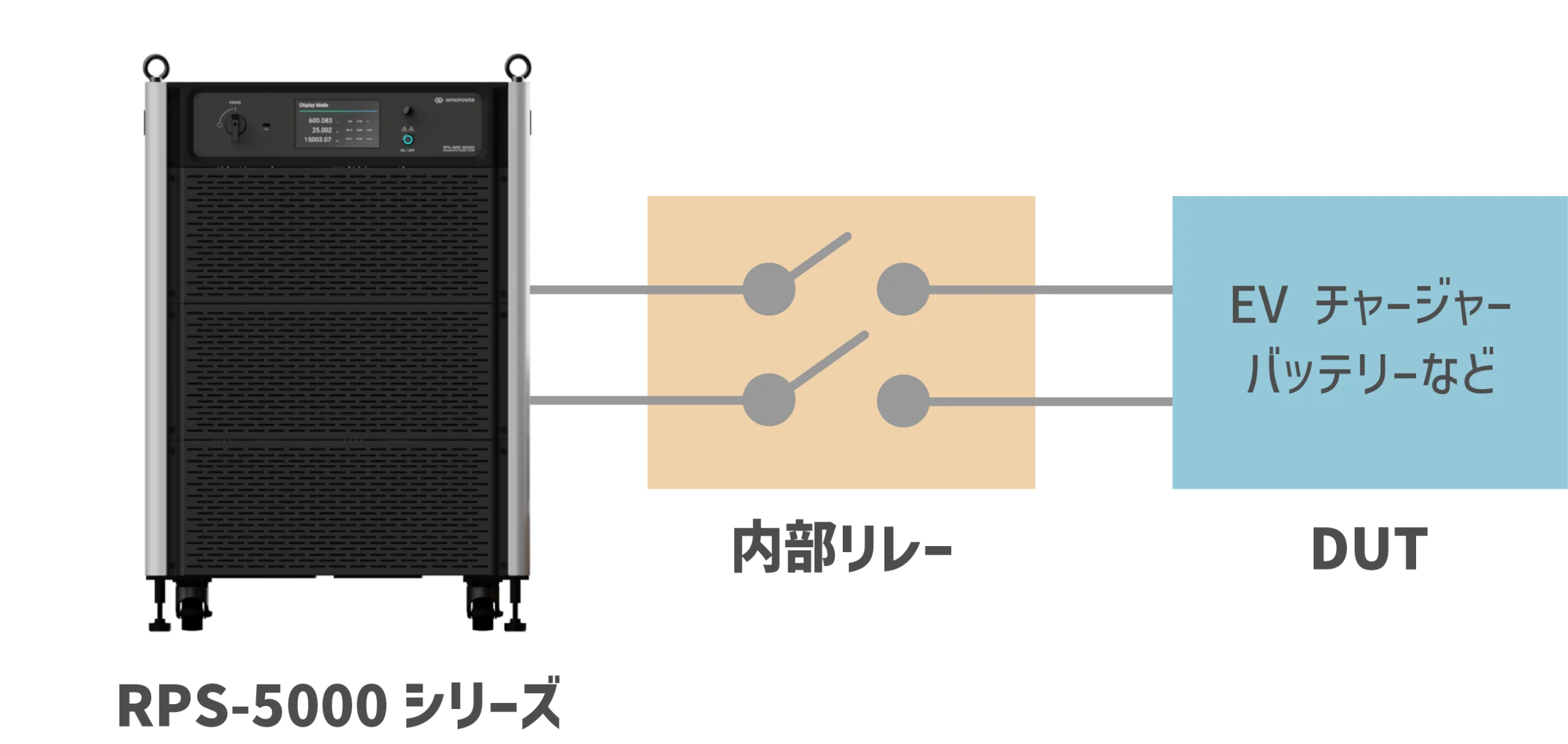 DUTと完全な切り離しが可能なリレー機能を内蔵。出力時のみ「ON」するか、常の「ON」するかの選択が可能です。