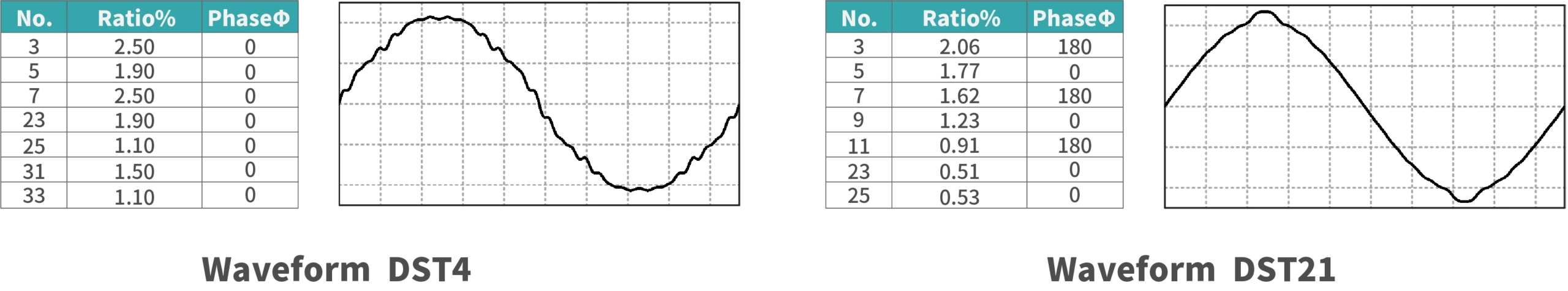 30セットのAC/AC+DC歪み波形(DST1~DST30)を搭載し、様々なテストシナリオにおける高調波歪みでの試験が可能です。