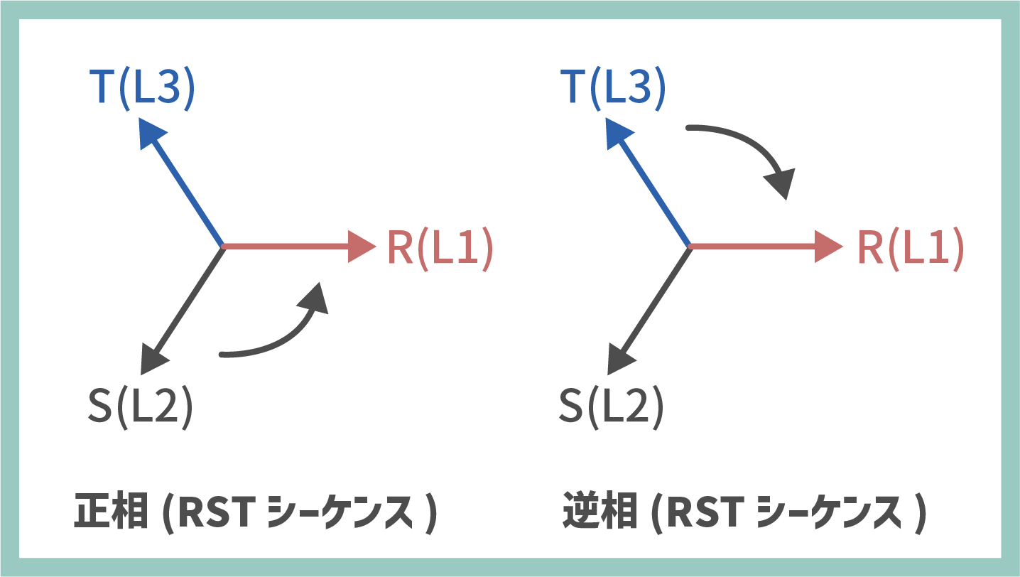 出力位相順序として正相(RSTシーケンス)または逆相(RTSシーケンス)を選択できます。正相(RST)は、出力位相順序がL1、L2、L3となり、R(L1)波形を基準とすると、S(L2)の位相は120°遅れます。逆相(RTS)は、出力位相順序がL1、L3、L2となり、R(L1)波形を基準とすると、T(L3)の位相は120°遅れます。モーター駆動などにおいて、出力位相順序が必要な際にご活用いただける機能です。