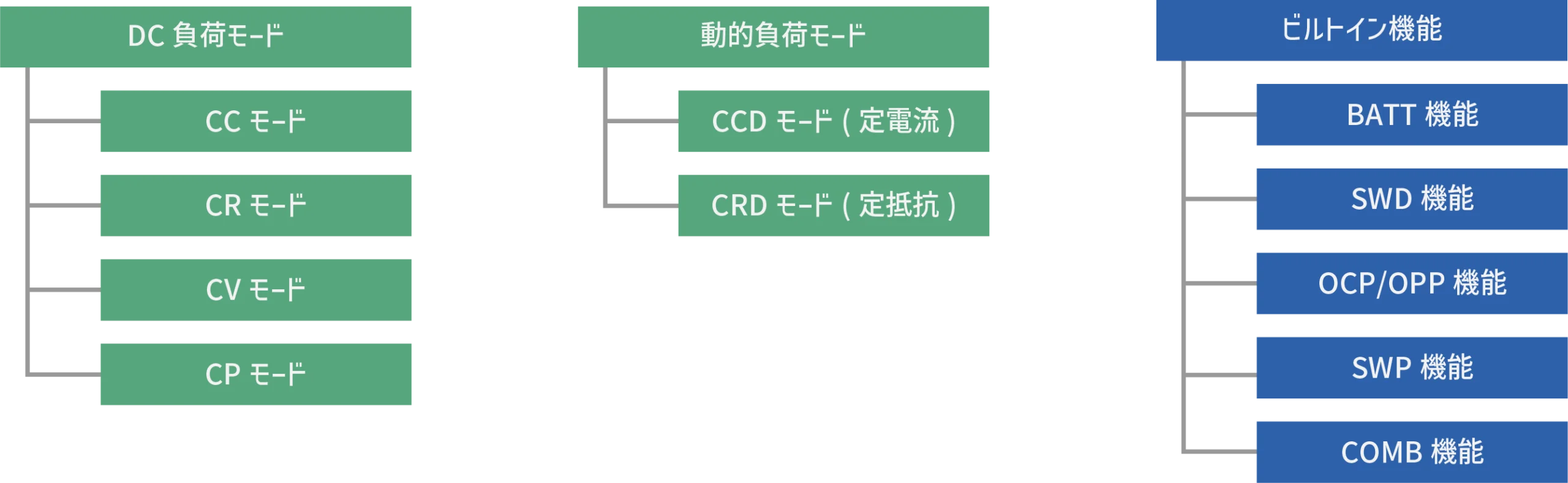 | 出力モード | 定電圧(CV)モード | 定電流(CC)モード | 定電力(CP)モード |