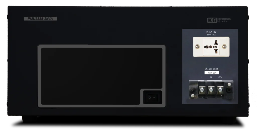 単相SWで500VA、1.25kVA、2kVA、3kVA、4kVA、6kVA、単相リニアで500VA、1kVA、2kVA、3kVA、5kVA、三相で3kVA、6kVAのモデルを検査電源仕様にあわせ任意に選択可能です。