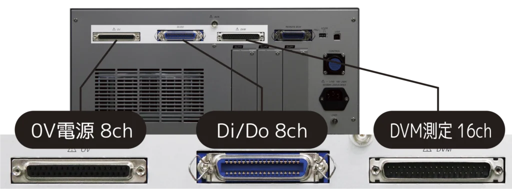 標準汎用測定部と合わせて、DVM測定とデジタルI/Oは最大32CHまでのCH数の増設ができます。