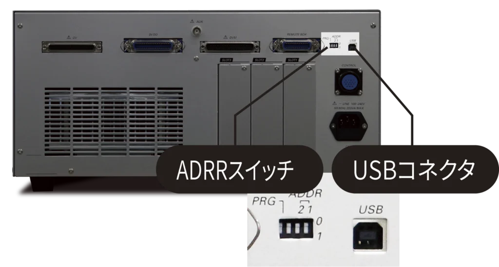 DUTや治具と接続しやすいように、ユニバーサルコンセントと端子台を搭載。