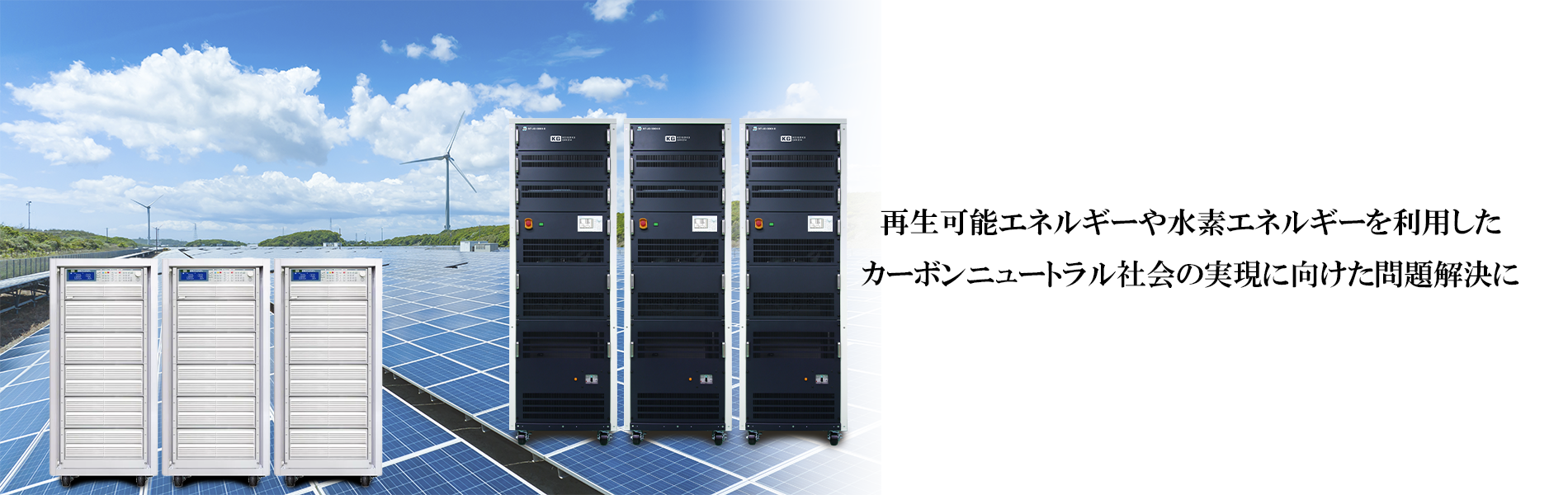 再生可能エネルギーや水素エネルギーを利用したカーボンニュートラル社会の実現に向け、エネルギー変換装置であるPCSやV2X、PVなどの電力変換装置の評価・試験では、大容量化に対応した交流電子負荷や直流電子負荷が、問題解決に欠かせない電源機器のひとつとなっています。