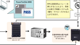 このアプリでは、交直両用回生電子負荷装置Ene-phantシリーズを使った、大容量スイッチング電源の試験についてご紹介します。大容量スイッチング電源の試験を行う場合、言うまでもなく入力側の交流電源や出力側の電子負荷も大容量の機種が必要となりますが、出力側の電子負荷に回生タイプを使用することにより試験に必要なトータルの消費電力を低く抑えることができます。